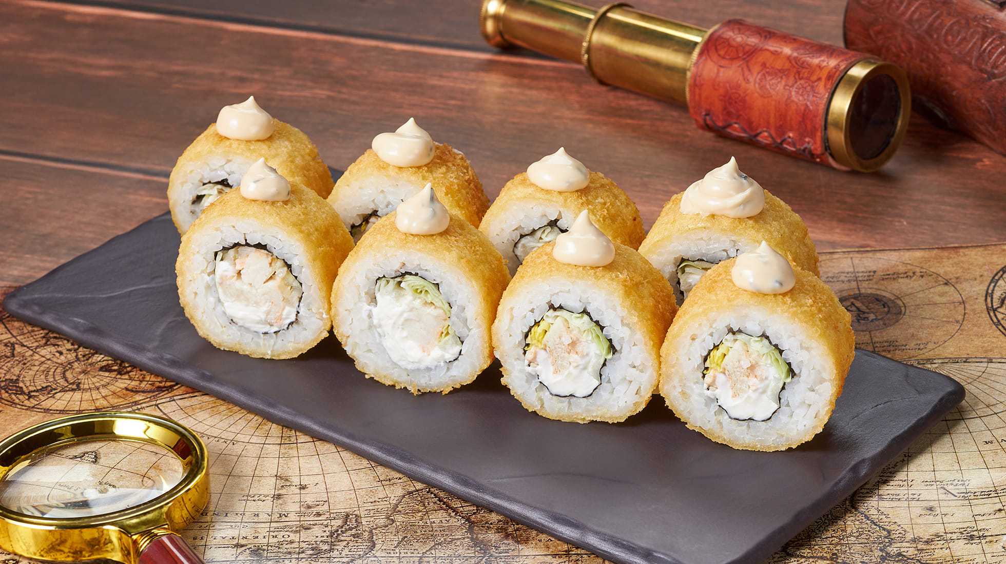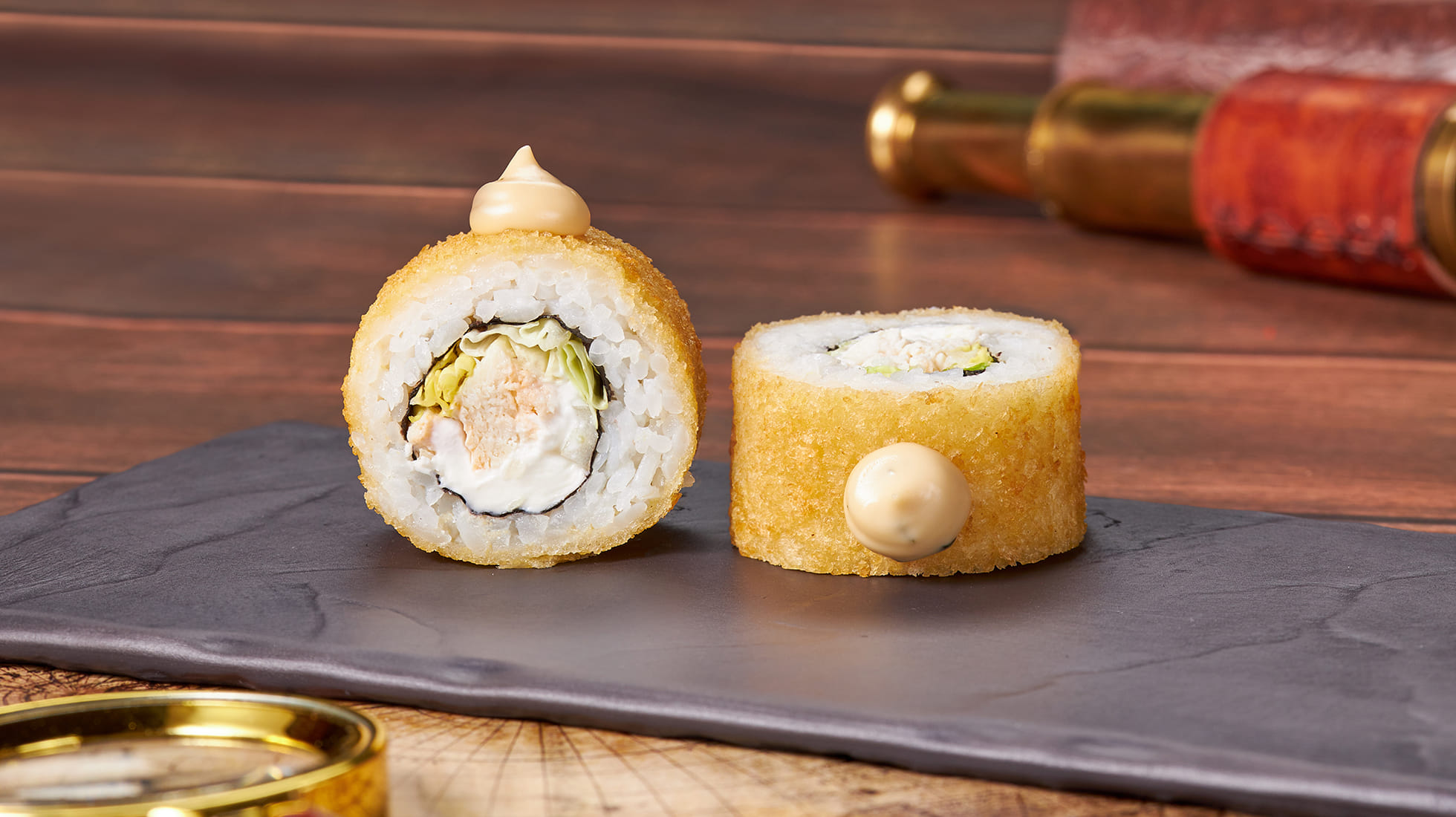 Состав: Курица, крем чиз, капуста пекинская, темпурный кляр, панировочные сухари, соус цезарь, рис, нори. *Не забудьте заказать имбирь, васаби и соевый соус. Они не входят в стоимость заказа. *Внешний вид блюда может отличаться от фото на сайте.